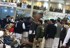 Am Nachmittag des 29.4.19 kam es bei der Friedens-Loja Dschirga zu heftigen Disputen im Saal und schließlich zum vorzeitigen Abbruch des ersten Tages. Foto: Pajhwok